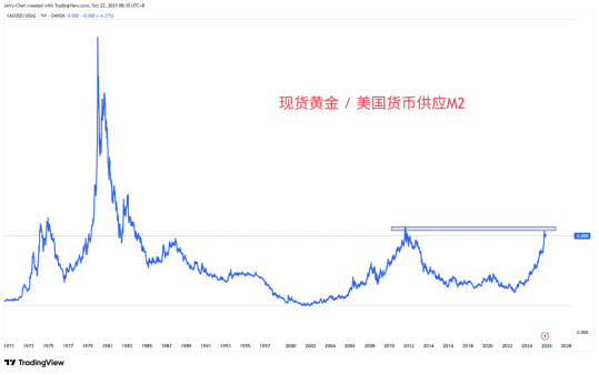 另一个显示黄金可能遭遇阶段性调整的指标是金价和美国货币供应(M2)的比率。该数值达到自2011年以来的更高水平,这意味着相比于美国货币超发和充裕的市场流动性,金价已经不再被低估。