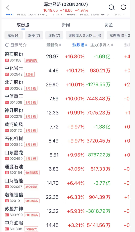 深地经济概念股持续活跃,、均3连板。