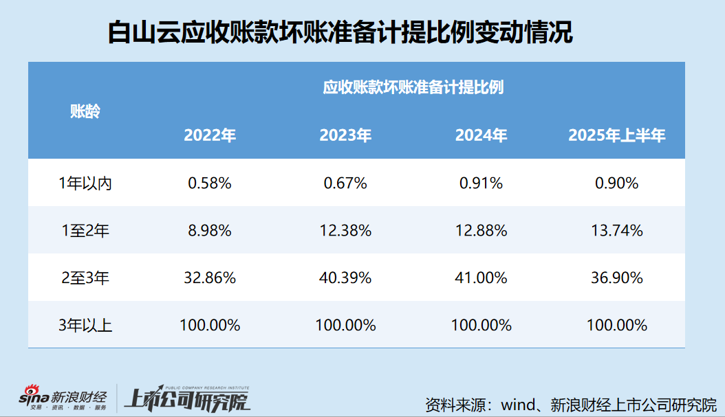 截至2025年6月30日,白山云贸易应收款项及应收票据、预付款项及其他应收款项分别为5.92亿元及1.33亿元,合计占流动资产的89.86%,占总资产的68.90%,绝大部分营运资金已被占用。其中,账龄超出信用期(90天)的应收账款2.61亿元,占应收账款总额的44.04%。