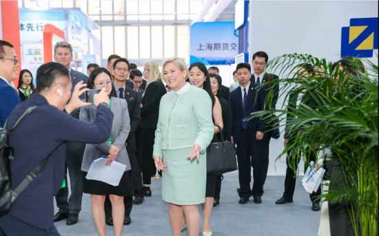 冰岛总统哈德拉·托马斯多蒂尔(H.E. Halla Tómasdóttir)一行参观了该展区,同行嘉宾还有冰岛驻华大使易卜雷先生、新浪财经CEO邓庆旭。