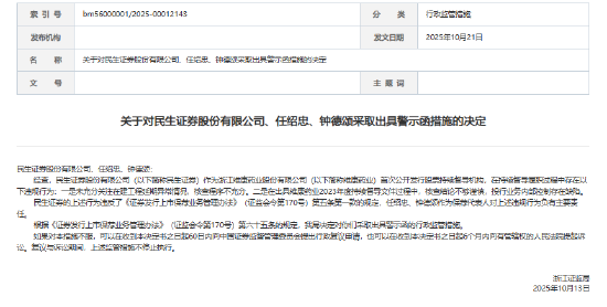近日,浙江证监局对民生证券及两名保代予以监管警示。
