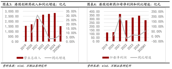“经历了4年调整后,2025年上半年创新药行业迎来复苏。”据万联证券对39家港股创新药的样本数据,2025年上半年港股创新药公司总收入1520.61亿元(同比增长7.66%),归母净利润282.66亿元(同比大增54.37%)。