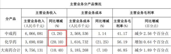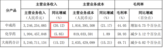 2024年以来,大南药板块中的传统优势业务中成药与化学药,营收均出现过大幅下滑。