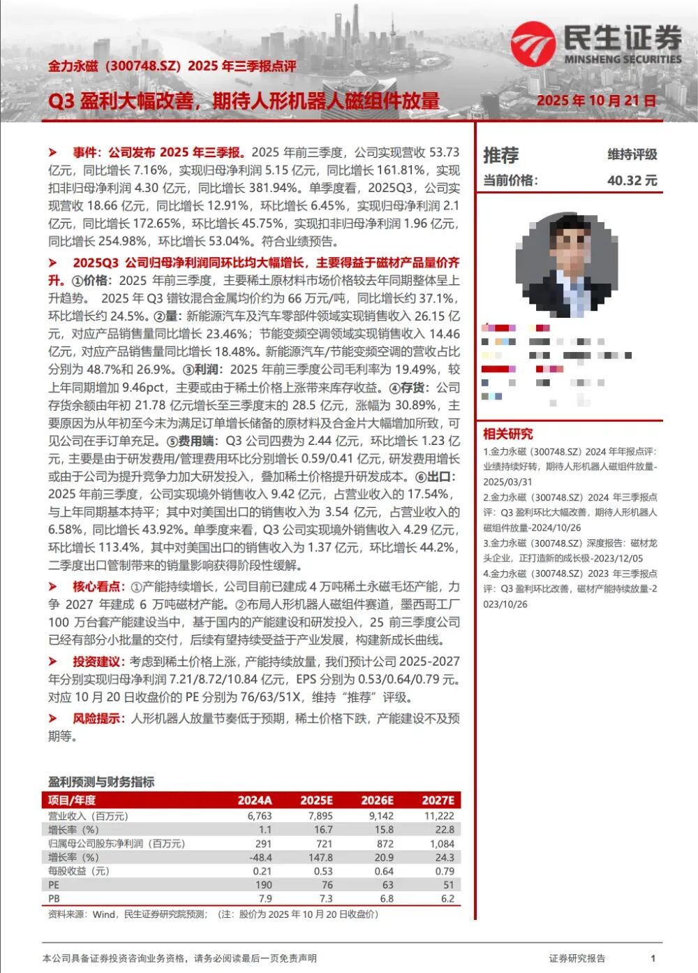 答:2025年前三季度,主要稀土原材料市场价格较去年同期整体呈上升趋势,公司通过灵活调整原材料库存策略等措施,积极应对稀土原材料价格波动风险,保障交付能力获得国内外客户的充分肯定,进一步巩固了经营的稳定性、可持续性。