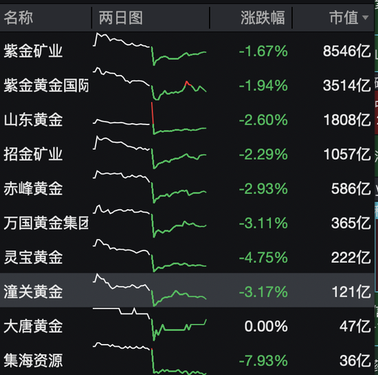 黄金概念股承压