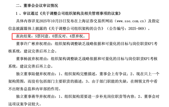 东方材料10月22日下午披露,公司董事会审议通过《关于调整公司组织架构及相关管理事项的议案》(下称“《调整结构议案》”)。证券时报·e公司记者注意到,虽然上述议案获得董事会审议通过,但董事们的意见并不完全一致,包括公司控股股东、实际控制人许广彬在内,有4名董事投了弃权票。