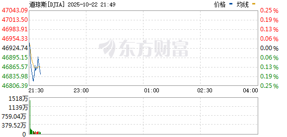 10月22日,美股三大指数震荡整理,截至发稿,道指跌0.05%,纳指跌0.06%,标普500指数涨0.07%。