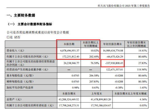 根据近日,科大讯飞发布2025年第三季度报告。第三季度,科大讯飞归母净利润1.72亿元,同比大幅增长202.40%。