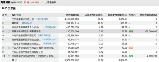 安防与智能物联领域龙头海康威视三季报显示,高毅资产资深基金经理冯柳管理的高毅邻山1号远望基金三季度减持该股5800万股,持股数量降至2.8亿股,期末持股市值为88.26亿元,位列第四大流通股东。事实上,冯柳已经连续四个季度减持海康威视,去年四季度减持了2605万股,今年一季度、二季度分别减持3595万股、1200万股。
