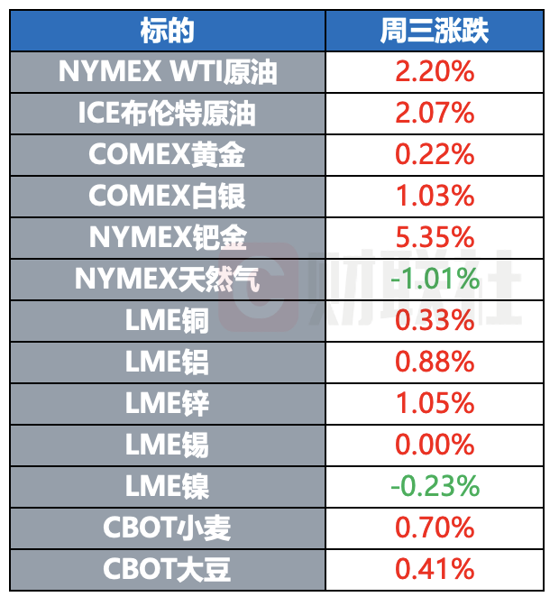 COMEX黄金期货涨0.22%,报4118.2美元/盎司;COMEX白银期货涨1.03%,报48.195美元/盎司。