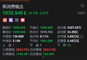 港股新消费概念股延续弱势,跌近8%,古茗跌超5%,沪上阿姨、蜜雪集团跌超4%,布鲁可跌超3%,老铺黄金跌近3%。