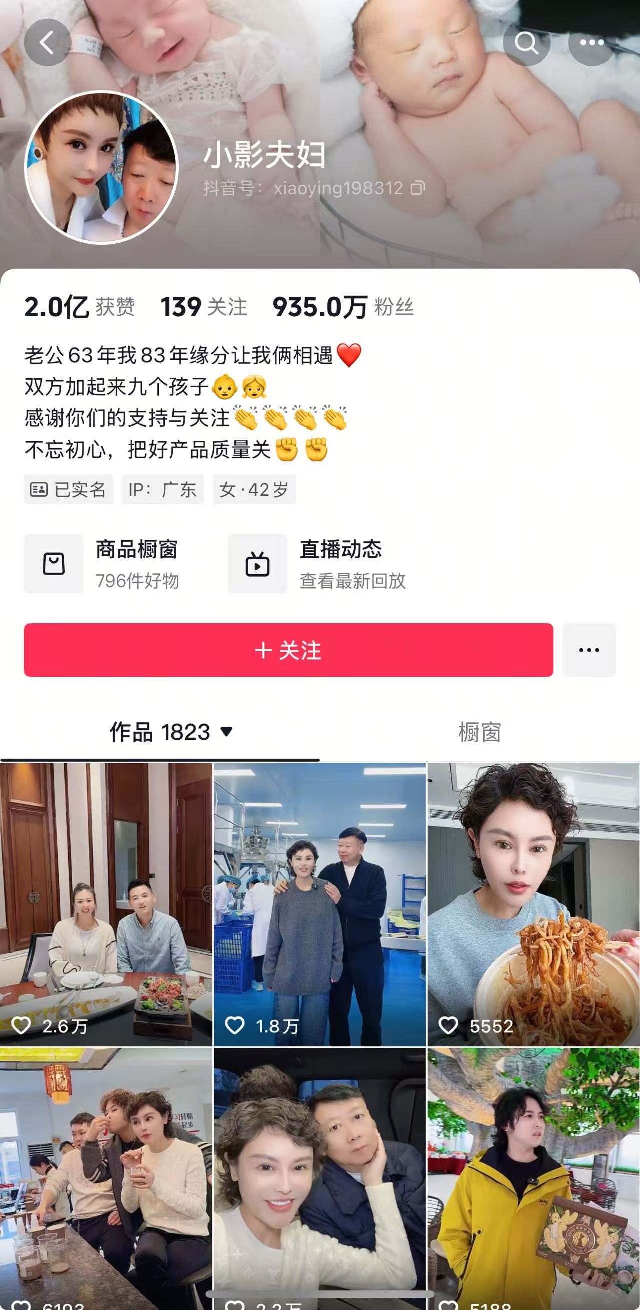 界面新闻发现,罚单曝光后,“小影夫妇”仍正常开播,平台数据显示,其账号粉丝量达935万,日均销售额未出现明显下滑。