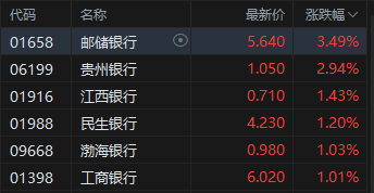 内银股活跃,邮储银行涨超3%。摩根士丹利最新研报称,国内银行股即将在三季度完成周期触底。这是中国金融体系首次在没有大规模 *** 政策下实现的“自然周期性触底”——M1增速反弹、工业企业利润改善均在无重大 *** 下完成。该行指出,第四季度即将到来的股息派发、利率企稳、5000亿元人民币结构性金融政策工具支撑,以及更可持续的政策路径,都将支撑银行股重估。