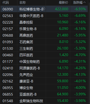 创新药概念延续跌势,再鼎医药跌超5%。华福证券指出,港股创新药板块近期调整较多,10月下旬或为布局重要时点。中长期看好有商业化能力且管线丰富的BioPharma、潜在BD标的及前沿技术方向。创新药产业趋势受益降息,业绩预计向好,年底BD密集期或成催化剂。