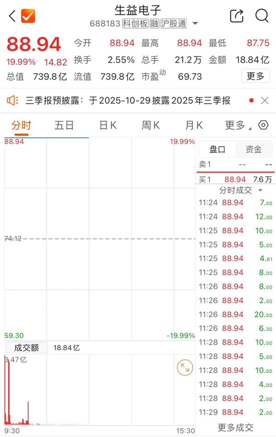 消息面上,生益电子三季度业绩超预期,股价开盘即20%幅度涨停,带动整个板块大涨。公告显示,生益电子预计前三季度营收66.138亿元到70.338亿元,同比增加108%到121%;归母净利润为10.74亿元至11.54亿元,同比增加476%到519%。